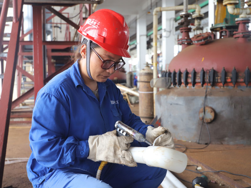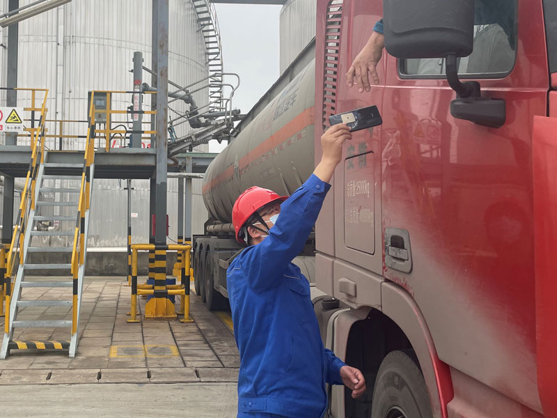 氯堿分公司黨支部黨員、綜合科科長(zhǎng)尤墩亞,在燒堿罐區(qū)例行檢查物流車(chē)輛防疫政策落實(shí)情況,嚴(yán)格執(zhí)行公司關(guān)于物流車(chē)輛防疫各項(xiàng)政策,檢查來(lái)司物流車(chē)輛駕駛員兩碼和核酸報(bào)告,筑牢公司疫情防控防火墻。